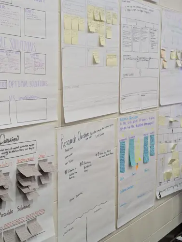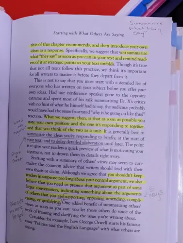 Students have been able to use these items in their research and group discussions. The students have enjoyed using the large poster sticky notes to brainstorm ideas, synthesize AP stimulus materials and IRR/IMP research. The highlighters and annotation tabs are used everyday and the students appreciate the variety of colors available for them to create specific annotation keys for their notes. In the pictures provided you can see examples of their IRR research process as they review their research question, synthesize their independent research and connect it together to create an optimal solution for their issue. There is another picture available showcasing some of the annotations taken in their textbook by a student using the materials provided.