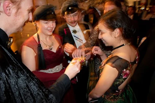 It was a miracle that our little group was even there that evening in the first place. Elisabet Idermark, a veteran Stockholm University professor who has been working in close collaboration with NSHSS for the seven years that the Nobel Week program has been running, worked her magic to obtain a few tickets to the exclusive party. The ten student tickets that she was able to snag were doled out via a “draw-from-the-hat” lottery system that any Nobel Week attendees who were 18 years or older could opt into. The chosen students and NSHSS staff members were given specific instructions on the white-tie dress code. Women were to wear floor-length gowns and men must arrive in a full tuxedo with tailcoats only. In the hours before the eleven o’clock start to the festivities, staff and student attendees gathered in the University Faculty Club to don gowns, tuxedos, makeup, hair pieces, and high heels, all while partaking in a celebratory champagne toast.